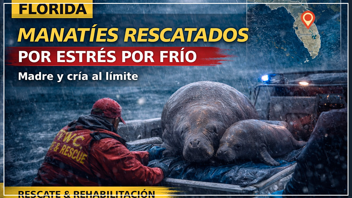 Florida rescata manatíes por frío: madre y cría al límite tras una ola de bajas temperaturas